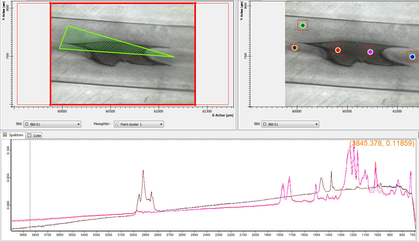 Vorgehensweise: Mikrotomschnitte werden mit dem FT/IR-Mikroskop untersucht.