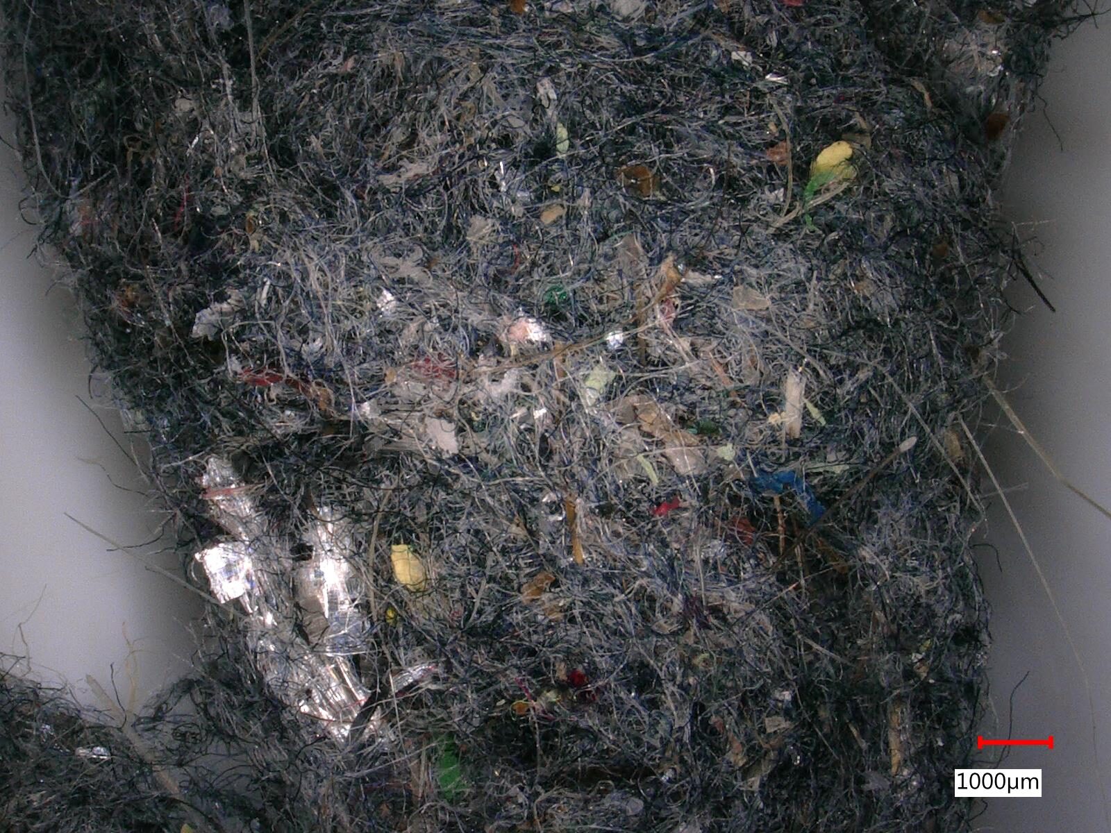 Bestimmung der Zusammensetzung der faserigen Hauptkomponenten sowie der häufigsten Partikel.